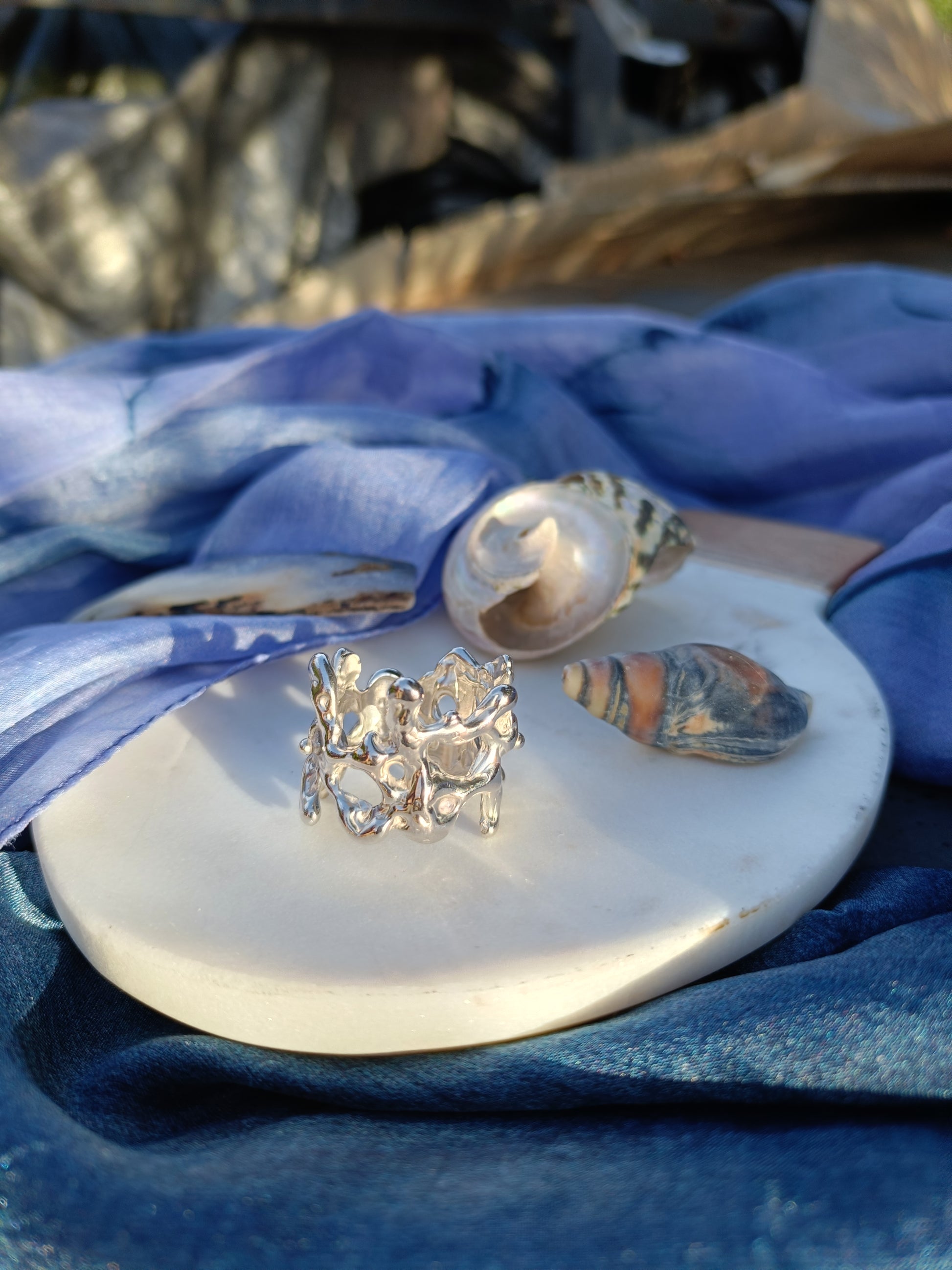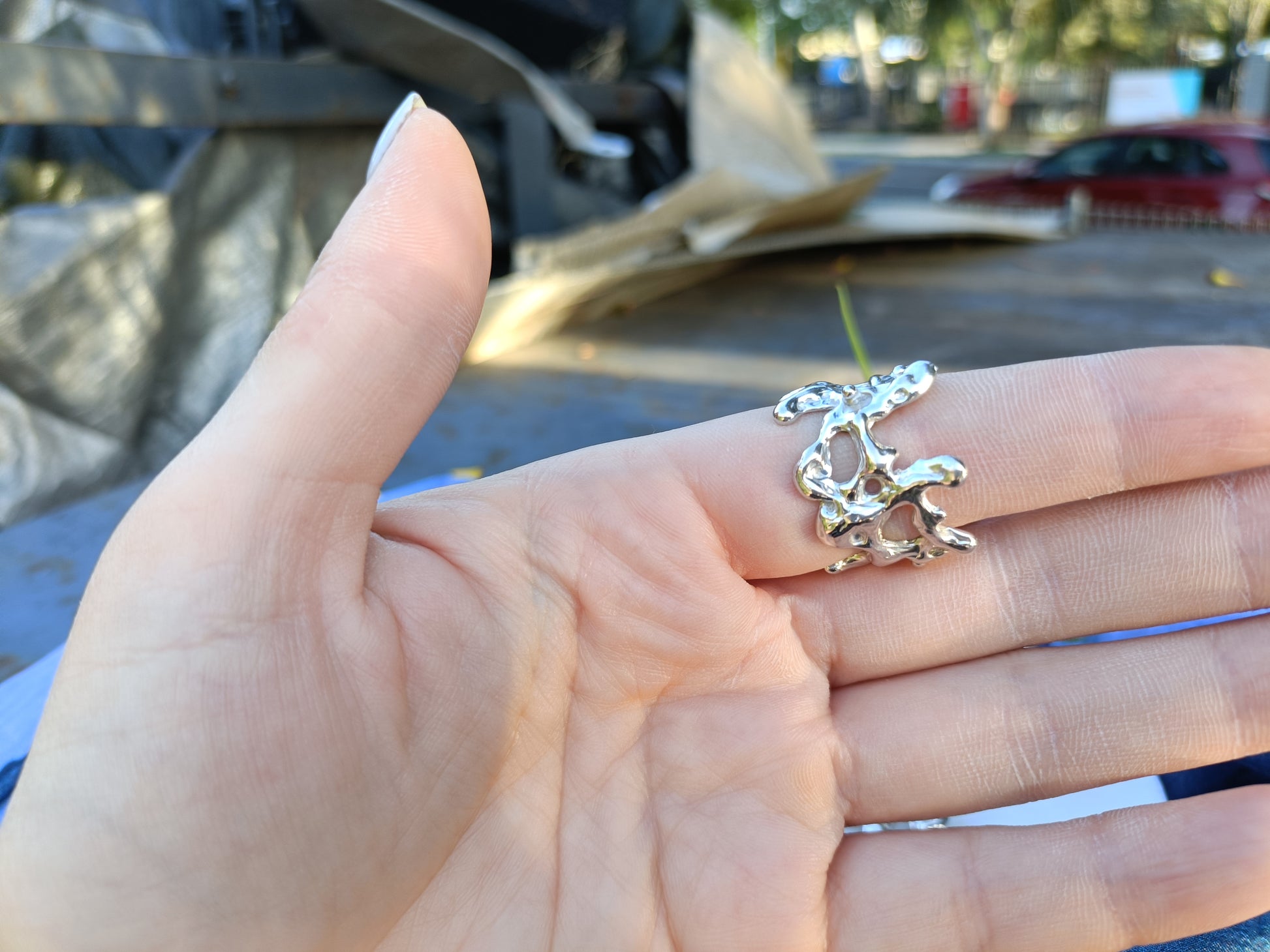 Make a statement with the Molten Orbit Ring, a bold and sculptural solid sterling silver 925 ring with an organic, molten-inspired texture. Handcrafted in small quantities, each ring is unique, capturing fluid movement and modern elegance in a wearable art piece.